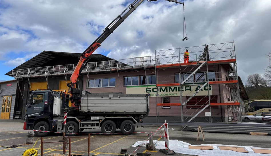 Unser moderner Lastwagenkran bietet die ideale Kombination aus Kraft, Reichweite und Flexibilität für vielseitige Kranarbeiten. Egal ob Baumaterial, Maschinen, Bauteile oder sperrige Güter: Wir heben und platzieren verschiedenste Materialien präzise am gewünschten Ort – auch an schwer zugänglichen Stellen. Durch die hohe Tragkraft und die grosse Ausladung unseres Kranfahrzeugs können anspruchsvolle Hebearbeiten sicher und effizient ausgeführt werden.